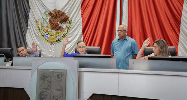En esta sesión ordinaria, la diputada Natalia Rivera Grijalva, presidenta de la Diputación Permanente, informó que al punto cuatro del orden del día, relativo a la declaratoria de la Mesa Directiva para dar a conocer la conformación del nuevo grupo parlamentario del Partido Encuentro Solidario del Congreso del Estado, se le dará debido cumplimiento en una próxima sesión del Pleno, la cual será convocada oportunamente, en atención a lo que establece el Artículo 163 de la Ley Orgánica del Poder Legislativo.
